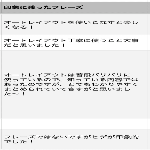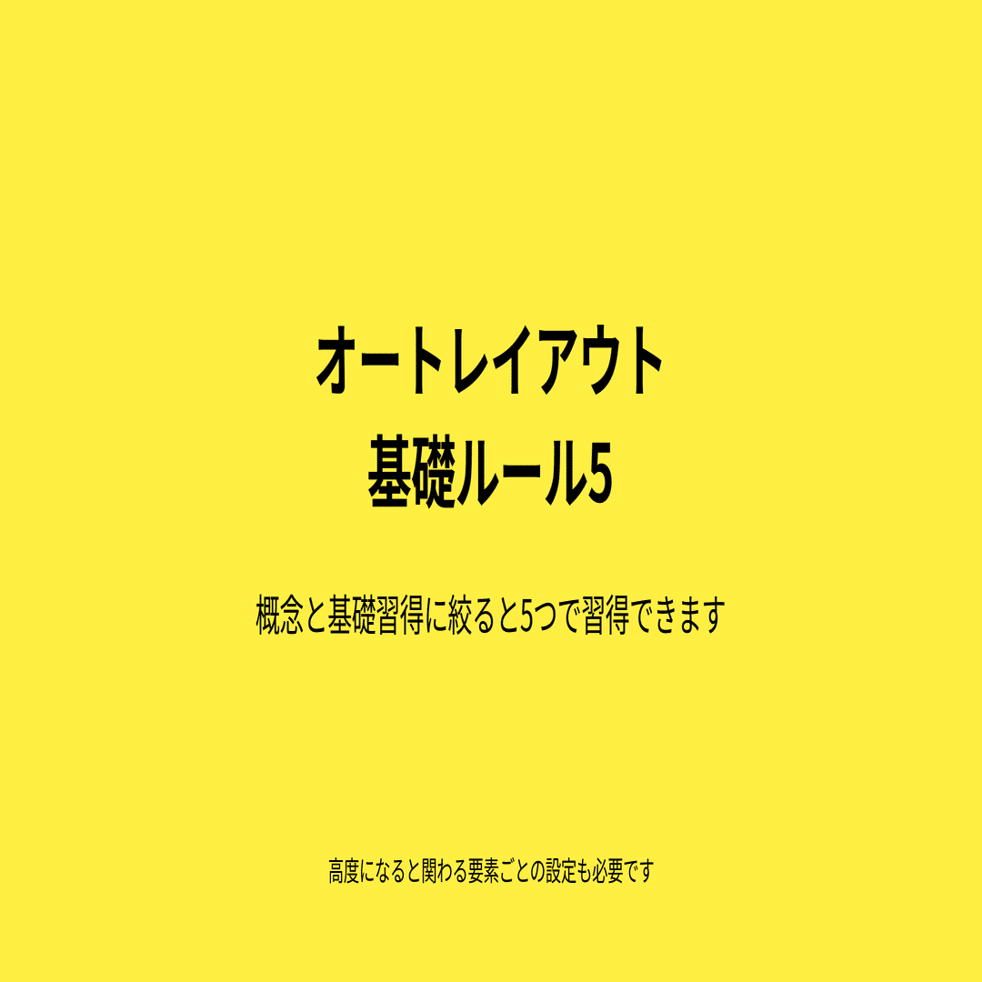 オートレイアウトの基礎ルールはまとめると5つくらい。しっかり基礎を習得すれば分かってくるはず、その5つを資料とともに説明しました。